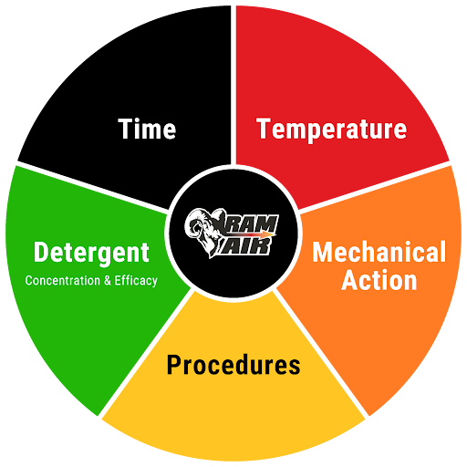It's also important to understand how NFPA guidelines are applied. The 120°F water temperature and 100G extraction speed are maximum allowable values. When determining pre-soak and main wash durations, these values should be treated as minimum requirements.